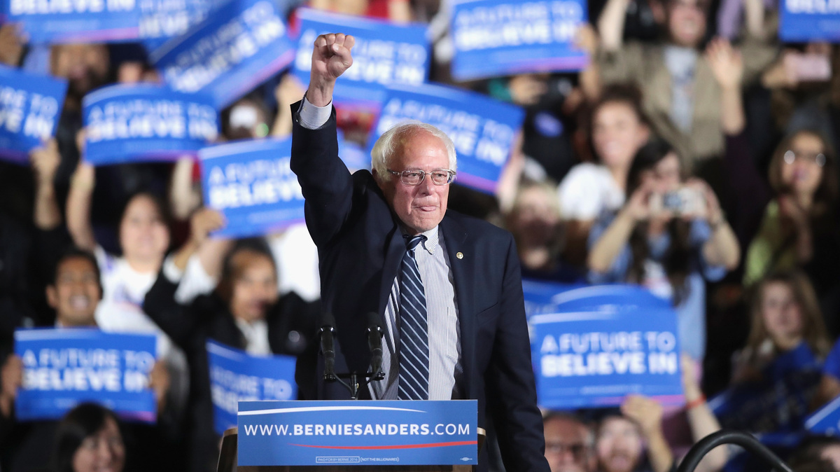 Bernie Sanders greets supporters at an election-night rally on June 7 in Santa Monica, Calif. Scott Olson/Getty Images hide caption