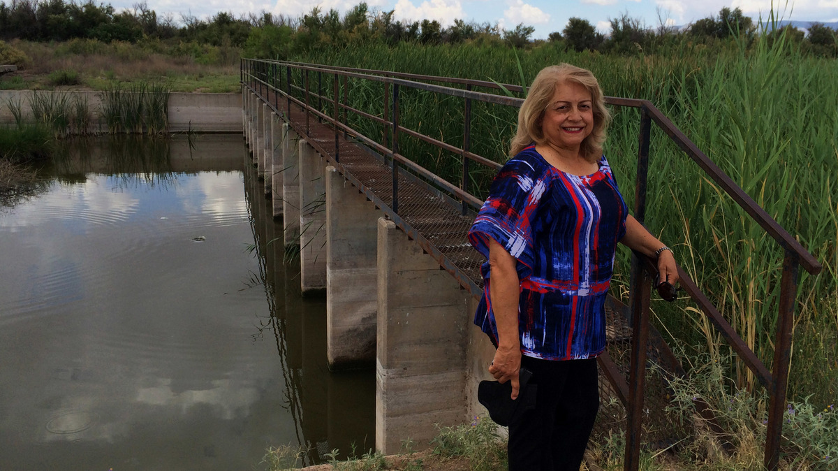 Lupe Dempsey, a retired federal agent, brings her Glock 9mm with her when she goes down to the Rio Grande. She believes the border is too wide open, evidenced by this unguarded metal walkway across the river in far West Texas.