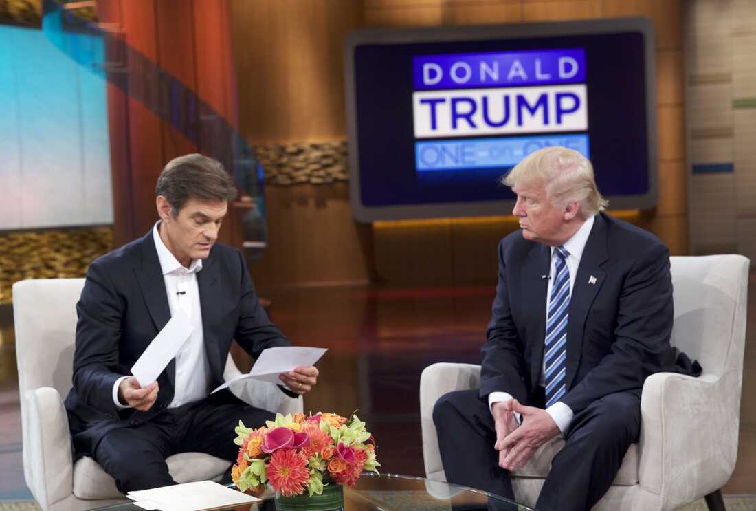 Donald Trump visited the Dr. Oz Show on Thursday to discuss his health and how he tries to stay fit on the campaign trail. AP hide caption