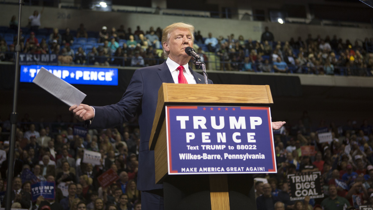 Republican presidential nominee Donald Trump holds a campaign rally in Wilkes-Barre, Pa., on Monday. Jessica Kourkounis/Getty Images hide caption