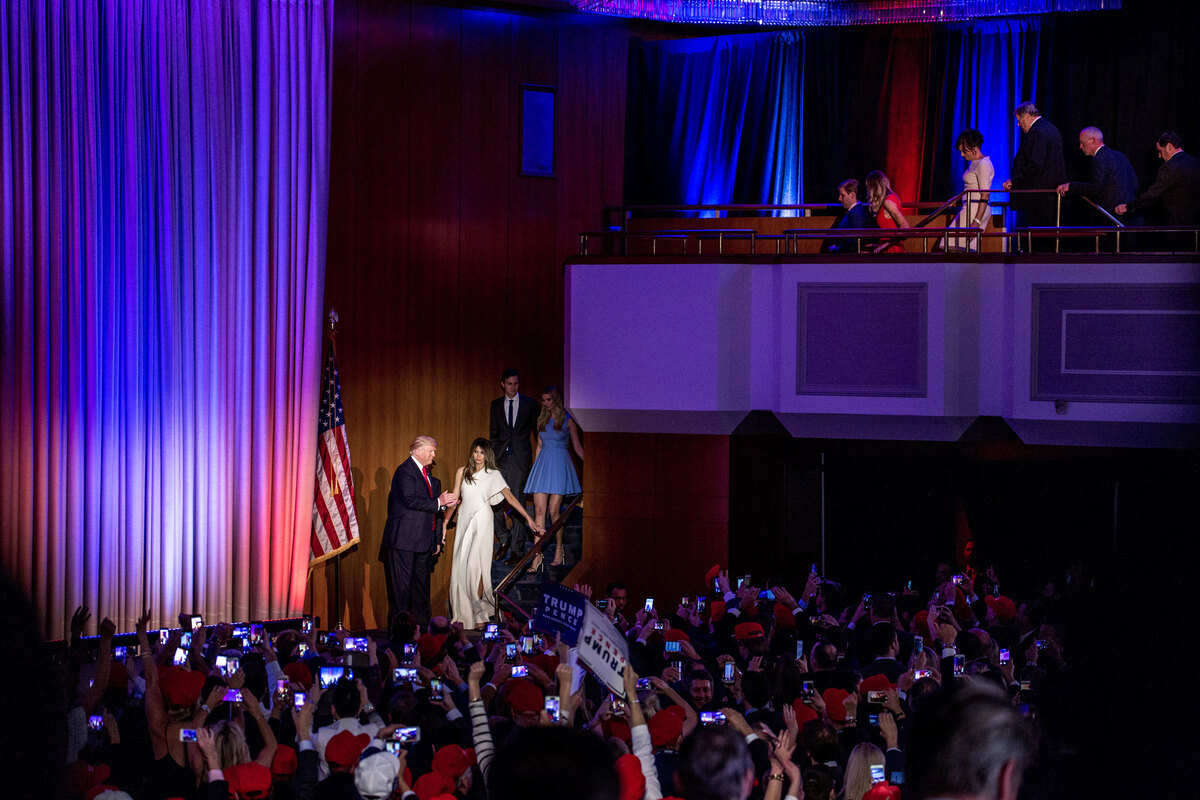 Donald Trump escorts his wife, Melania, to the stage moments before giving his acceptance speech.