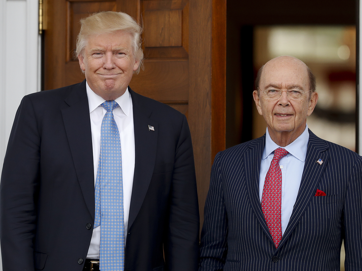 President-elect Donald Trump pauses for photographs with investor Wilbur Ross at the Trump National Golf Club in Bedminster, N.J., on Nov. 20. Trump plans to nominate Ross to serve as commerce secretary. Carolyn Kaster/AP hide caption