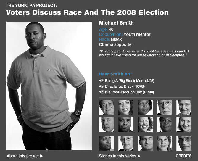 Back in 2008, NPR visited York, Pa., to talk to more than a dozen voters about race and the election. Those 8-year-old recordings are like a time capsule now. And the online interactive that complemented the radio stories similarly feels like digital flashback. If your browser supports Flash, read more about the 15 voters here and see a photo gallery of York, Pa., here. You can hear the radio stories here.