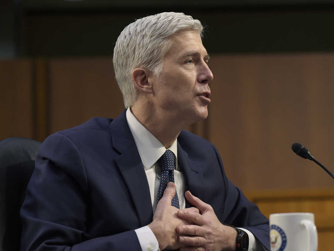 Supreme Court Justice nominee Neil Gorsuch testifies during his confirmation hearing before the Senate Judiciary Committee on Wednesday, March 22, 2017. (AP Photo/Susan Walsh) Susan Walsh/AP hide caption