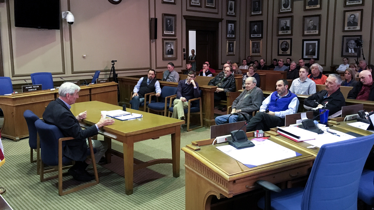Rep. Rick Nolan holds a town hall in Virginia, Minn., on Wednesday. The Democrat won a narrow victory in one of the most expensive contests in the country in 2016. Don Gonyea /NPR hide caption