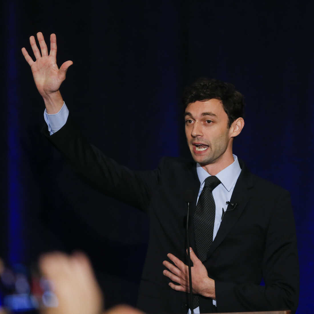 Democratic candidate for Georgia's 6th Congressional District Jon Ossoff speaks to supporters during an election-night watch party in Dunwoody, Ga., in April. John Bazemore/AP hide caption