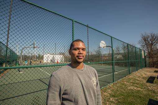 After he was finished playing basketball, Watson sat in his car and watched a baseball game happening in the park.