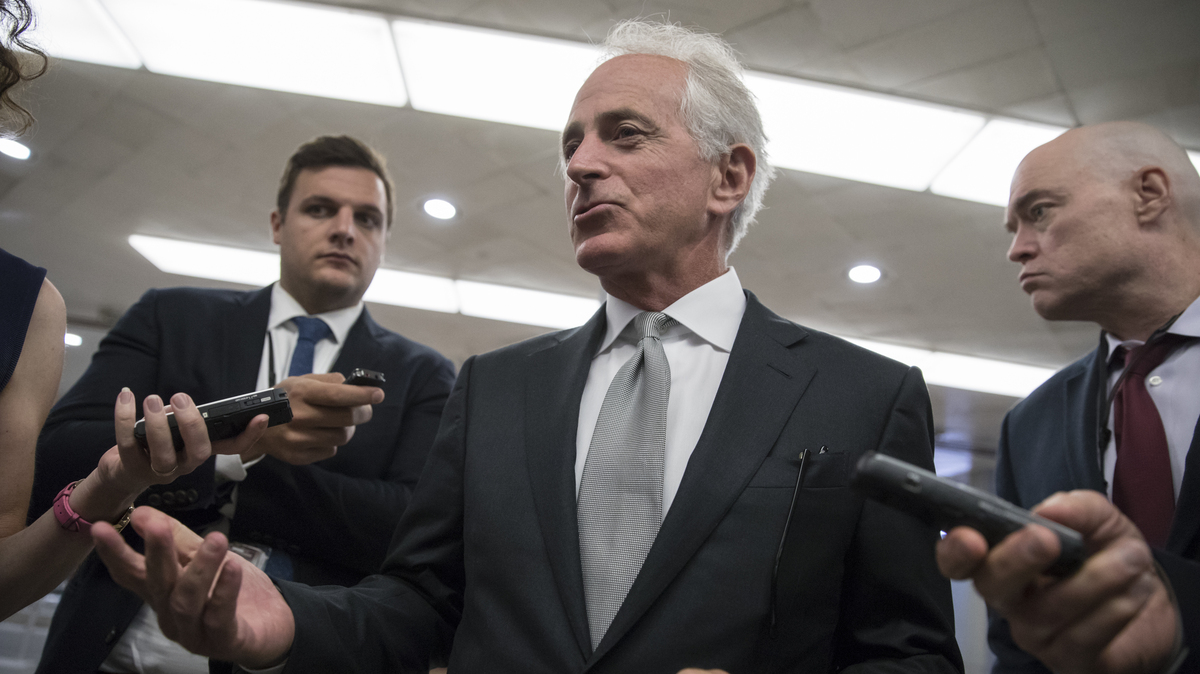 Sen. Bob Corker, R-Tenn., chairman of the Senate Foreign Relations Committee, chats with reporters at the Capitol in Washington, on Tuesday.
