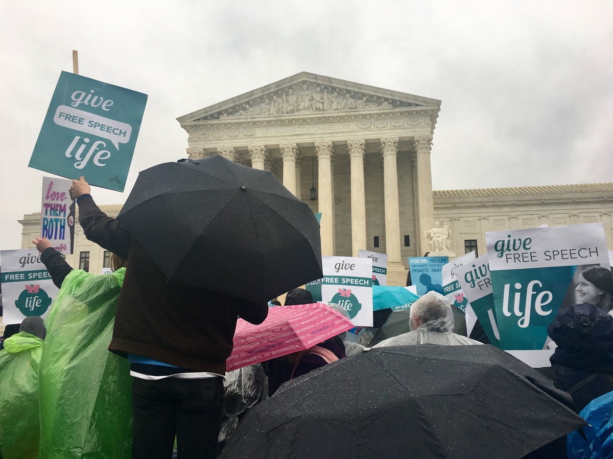 The case before the justices pitted the right to know against the right of free speech. On one side are self-identified "crisis pregnancy centers" that seek to prevent abortions, and on the other side is the state of California, which enacted a law to ensure that these centers do not intentionally or unintentionally mislead the women who walk through their doors.