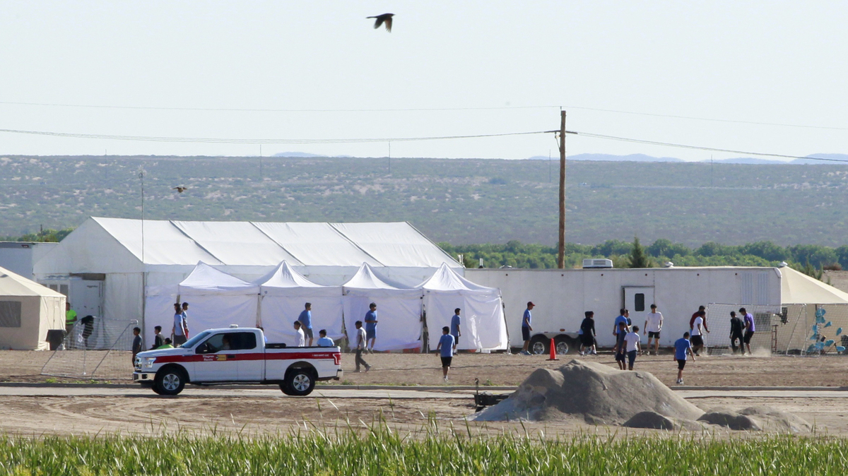 The Pentagon plans to build temporary camps for detained immigrants. Here, children of detained migrants are seen at a tent encampment near the U.S. Customs and Border Protection port of entry in Tornillo, Texas.