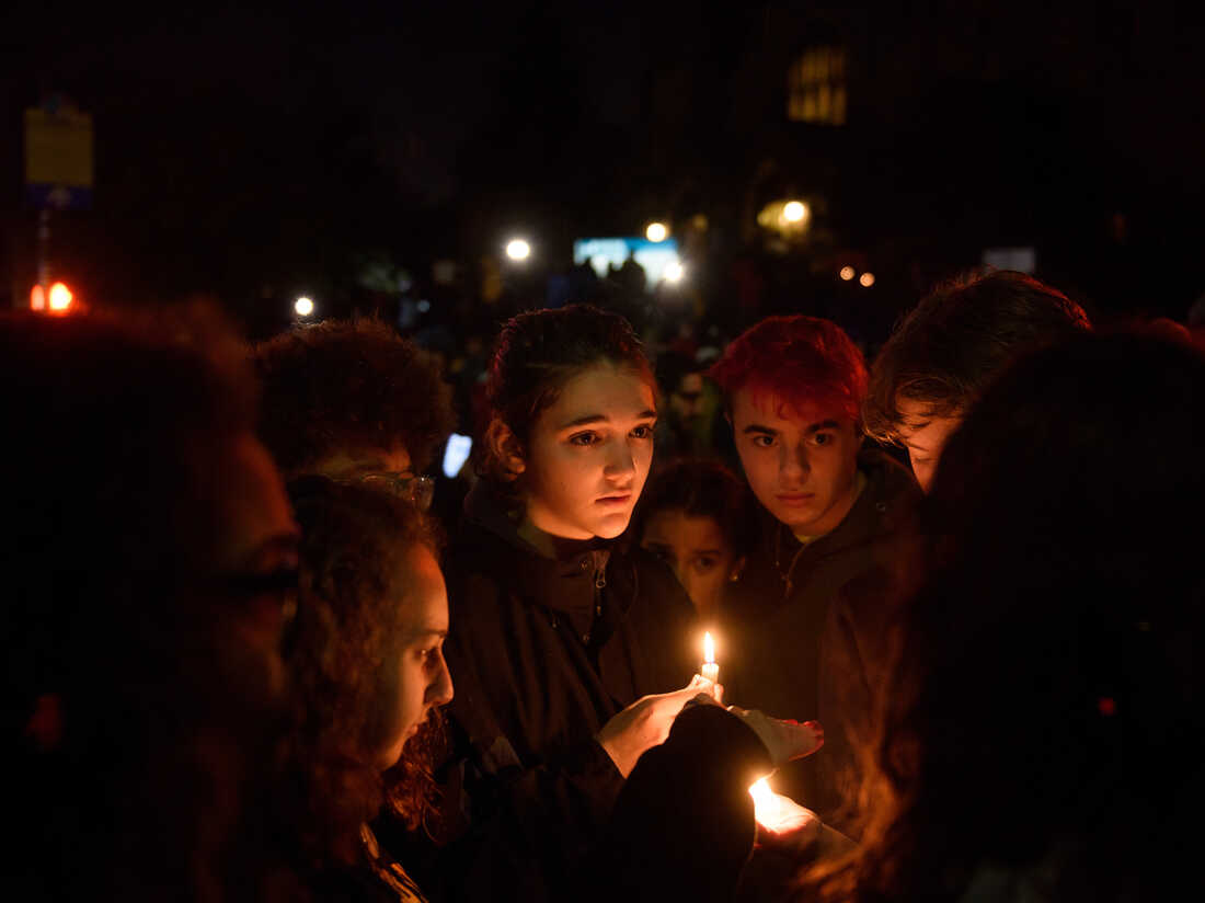 People gather for an interfaith candlelight vigil a few blocks away from the site of a mass shooting at the Tree of Life Synagogue. Jeff Swensen/Getty Images hide caption