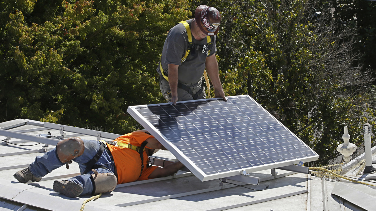 California predicts mandatory solar panel installations will add nearly $10,000 to the upfront cost of a home — money that will be recouped through energy savings. Rich Pedroncelli/AP hide caption