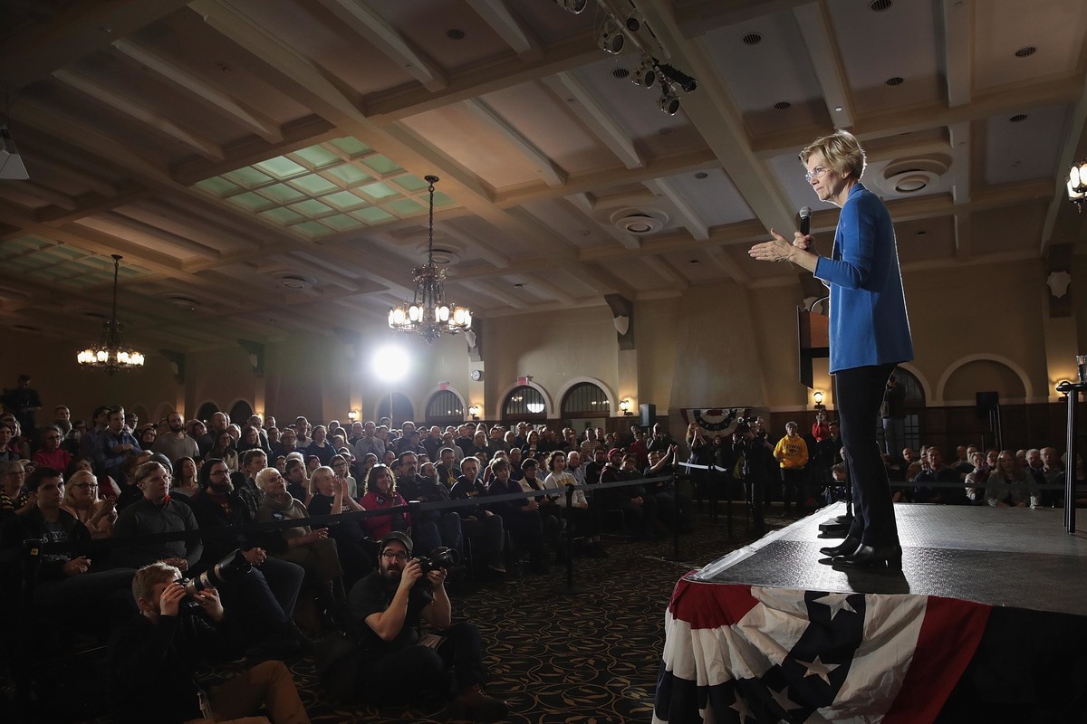 While Sen. Elizabeth Warren, seen speaking in Iowa, may be dominating the policy debate, there is little evidence that voters are rewarding politicians who flesh out their plans over others with strong personal brands.