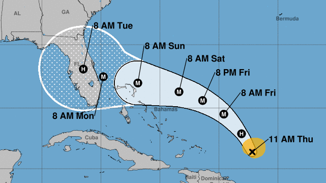 "There is an increasing likelihood of life-threatening storm surge along portions of the Florida east coast" on Labor Day weekend, the National Hurricane Center says. "Residents should have their hurricane plan in place, know if they are in a hurricane evacuation zone, and listen to advice given by local emergency officials."