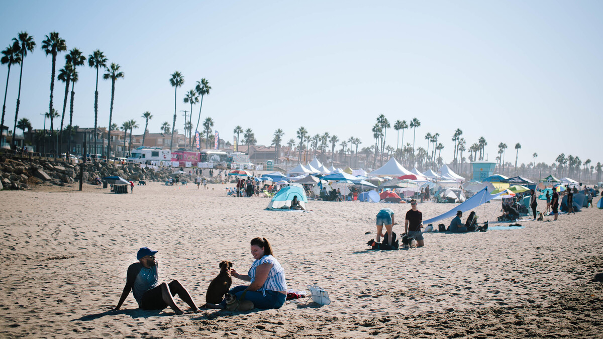 NPR's Sam Sanders helps Chloe Schofield, a busy special education teacher, transform her weekend into a relaxing mini-vacation at Huntington Dog Beach in Huntington Beach, Calif. Morgan Walker for NPR hide caption