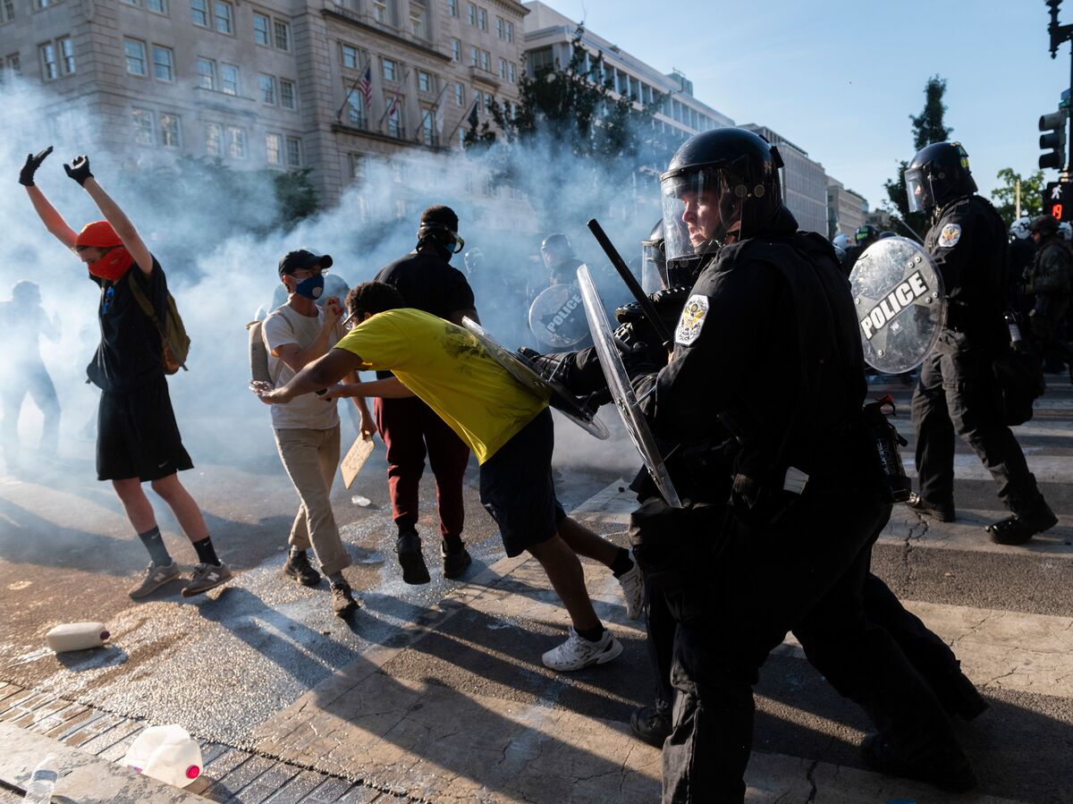 Police fired tear gas and pushed back protestors near the White House on June 1, 2020, as demonstrations against police brutality and racial injustice continue.