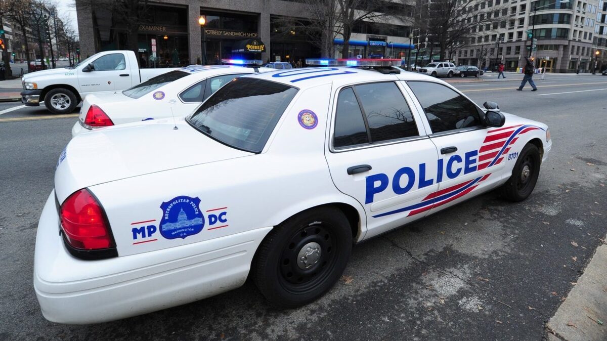 Washington, DC police cruisers parked on K Street at the Occupy encampment in McPherson Square.