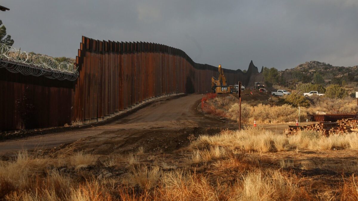 Work is done on a new border wall being constructed in Jacumba, California. Sandy Huffaker/Getty Images hide caption