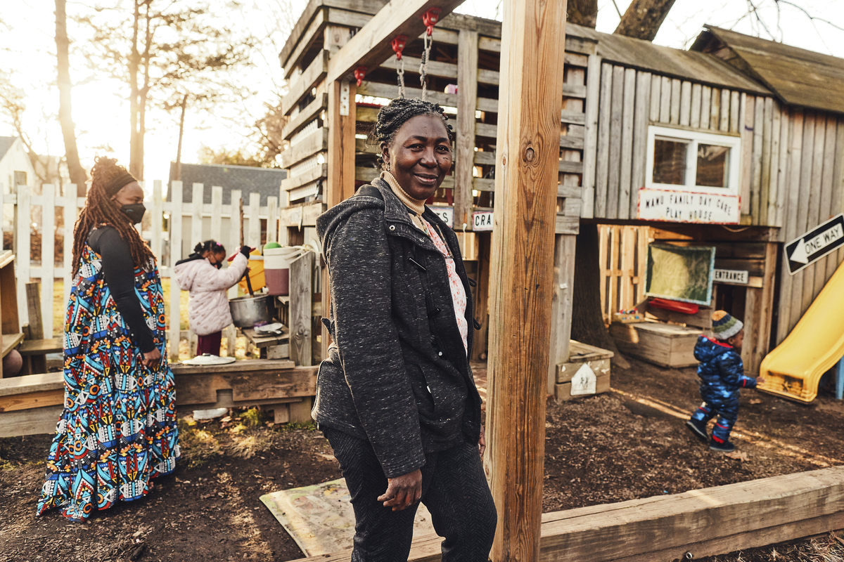 Ngoh cares for children at her home in West Haven. She said they spend a lot of time outdoors, no matter the weather. Mohamed Sadek for NPR hide caption