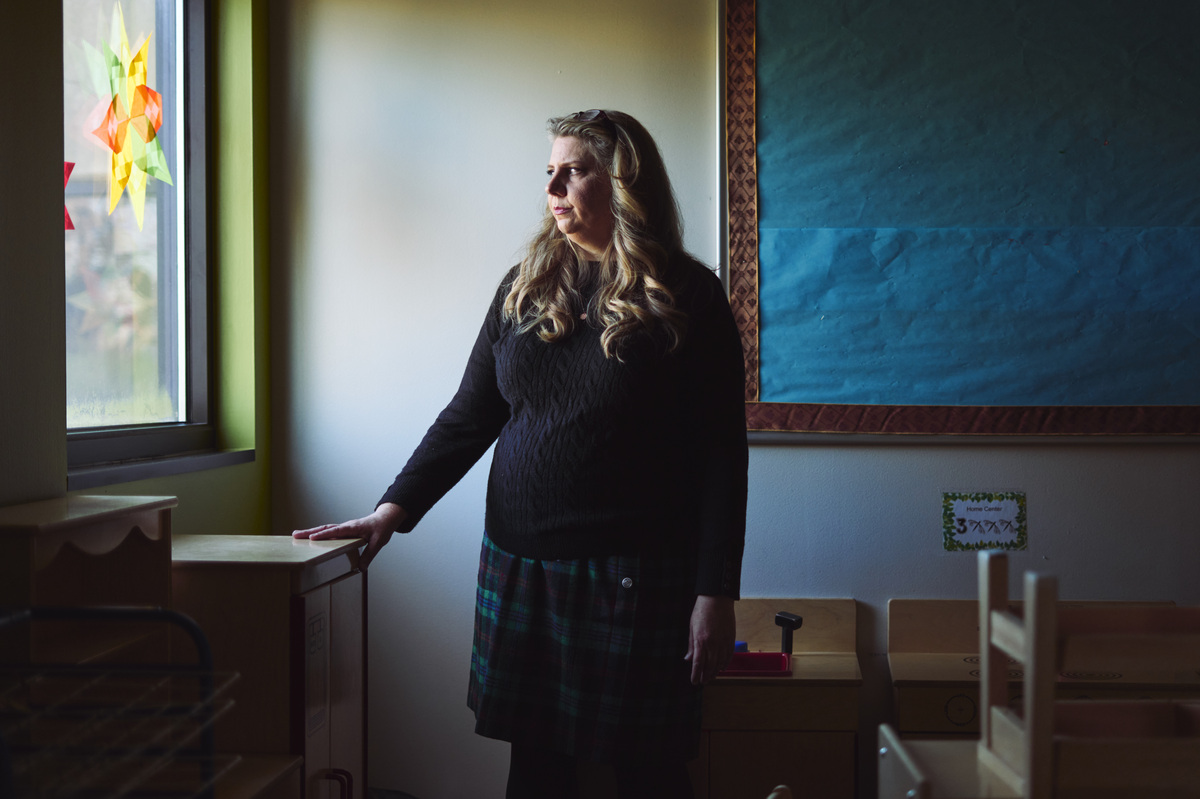 Cooper Neill for NPR"I had a parent tell me to f*** off last week," Cori Berg said. She directs the Hope Day School, a church-affiliated early childhood program in Dallas.