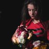 A police officer arranges bouquets of flowers in rows at a side entrance to Dunblane Primary School following a school shooting that left 16 students and one teacher dead.