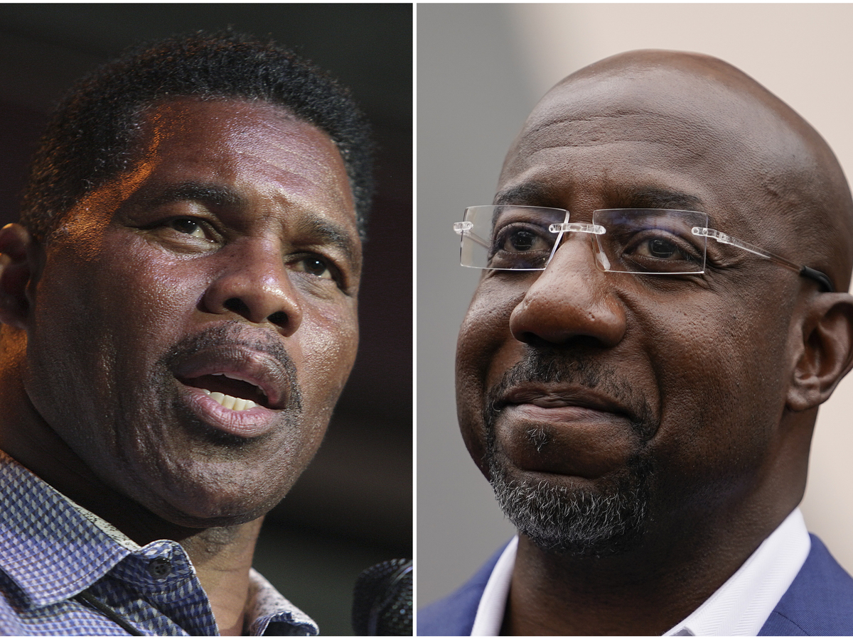 Herschel Walker, Republican candidate for U.S. Senate for Georgia, left, and incumbent Sen. Raphael Warnock.