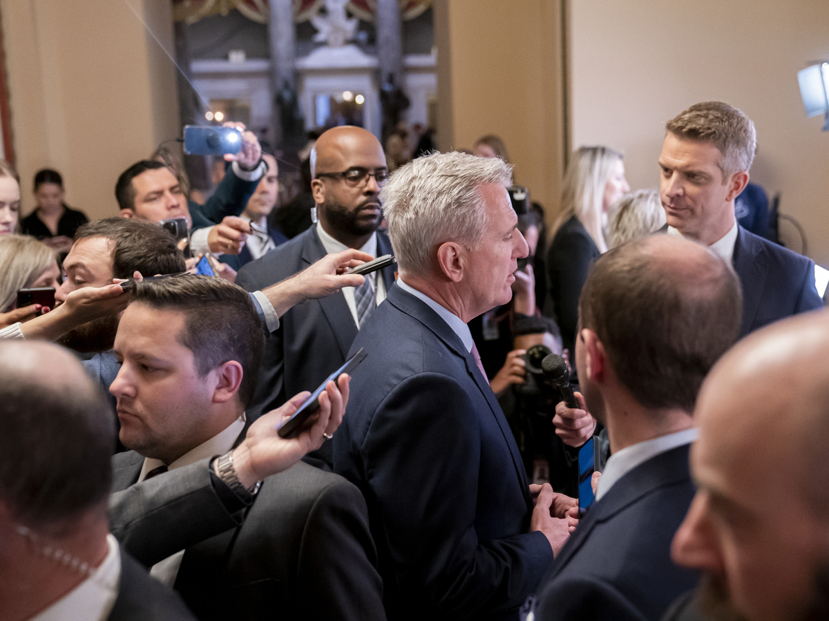 Republican Leader Kevin McCarthy enters the Capitol on January 6. Nathan Howard/Getty Images hide caption