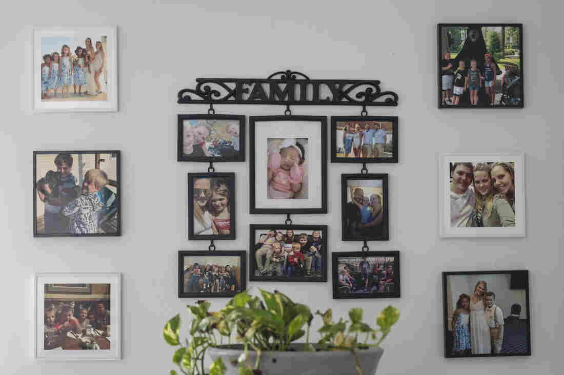 The walls of the Johnsons' home are filled with family photos. Phyllis B. Dooney for NPR hide caption