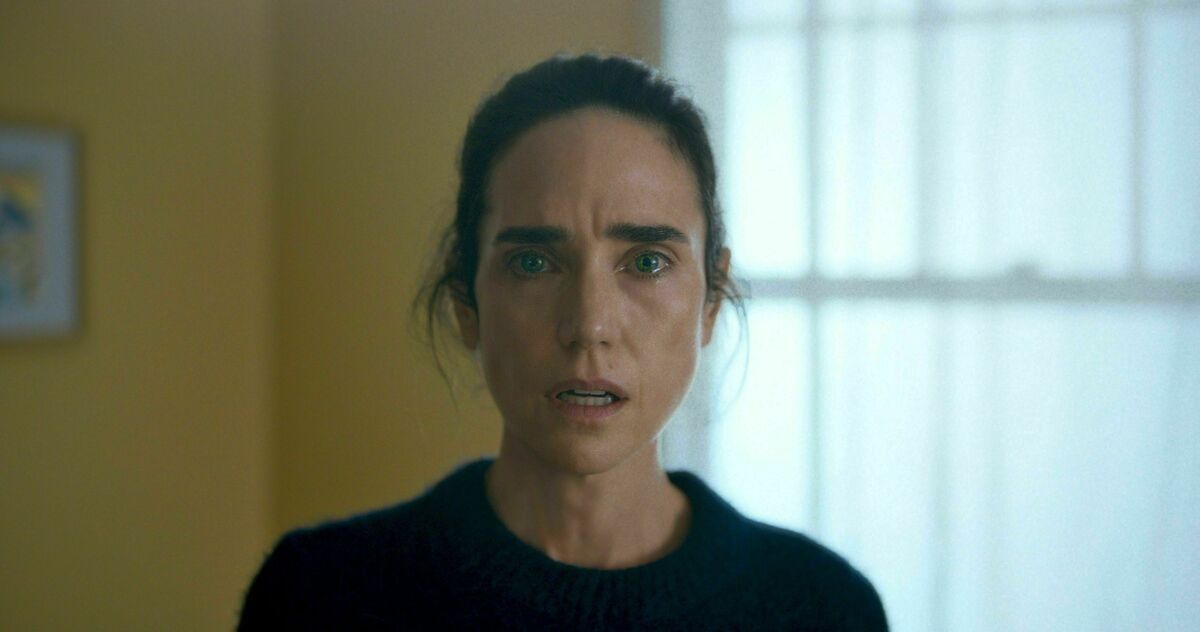 Jennifer Connelly stars as a former child actor attending a silent retreat in the dark comedy Bad Behaviour. Matt Henley/Bad Behaviour hide caption
