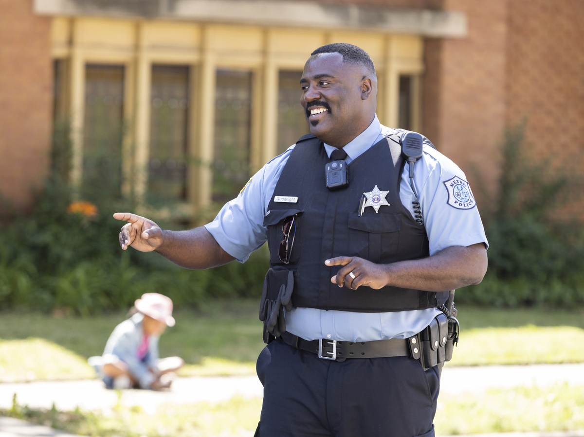 Bashir Salahuddin as Officer Goodnight in South Side Season 3 Adrian S. Burrows Sr./HBO Max hide caption