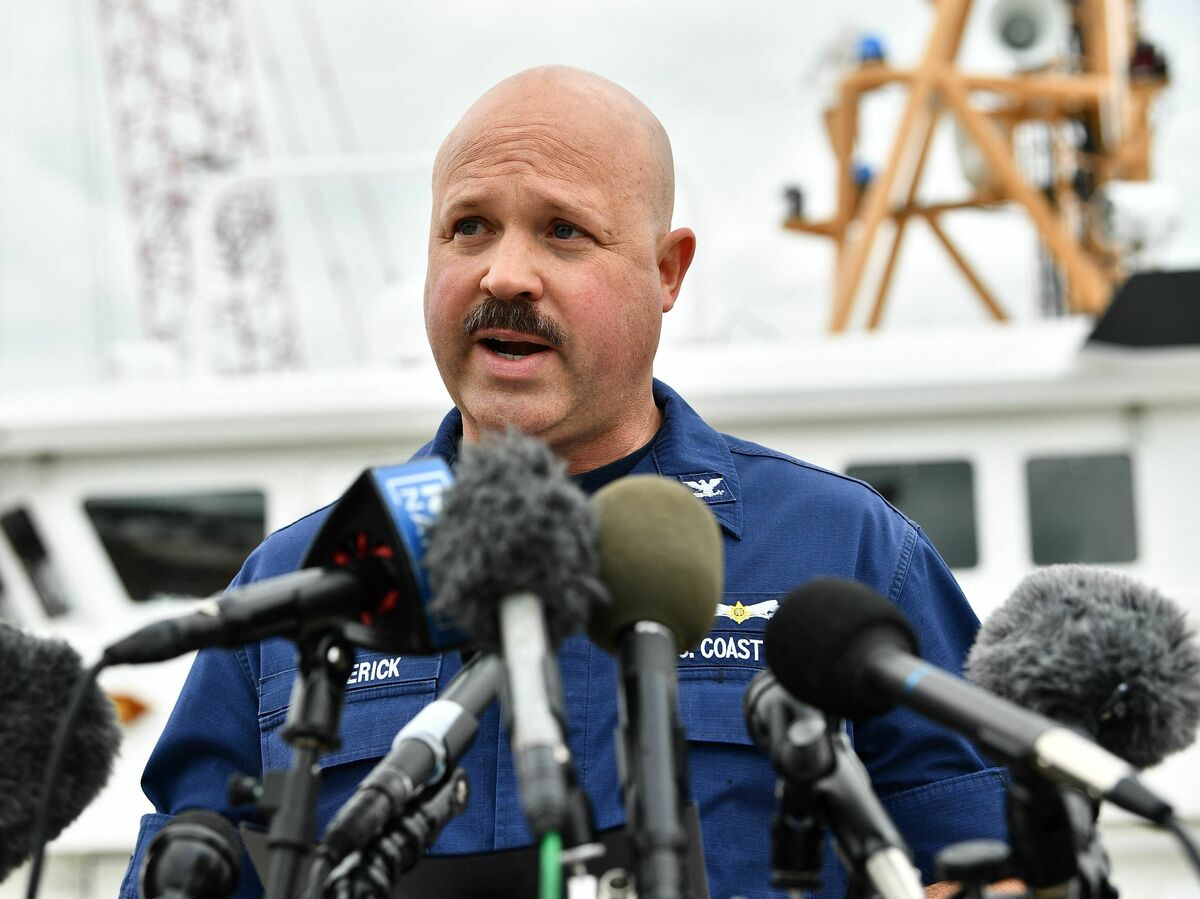 U.S. Coast Guard Capt. Jamie Frederick speaks during a press conference about the search efforts for the submersible that went missing near the wreck of the Titanic in Boston on Tuesday. Joseph Prezioso/AFP via Getty Images hide caption