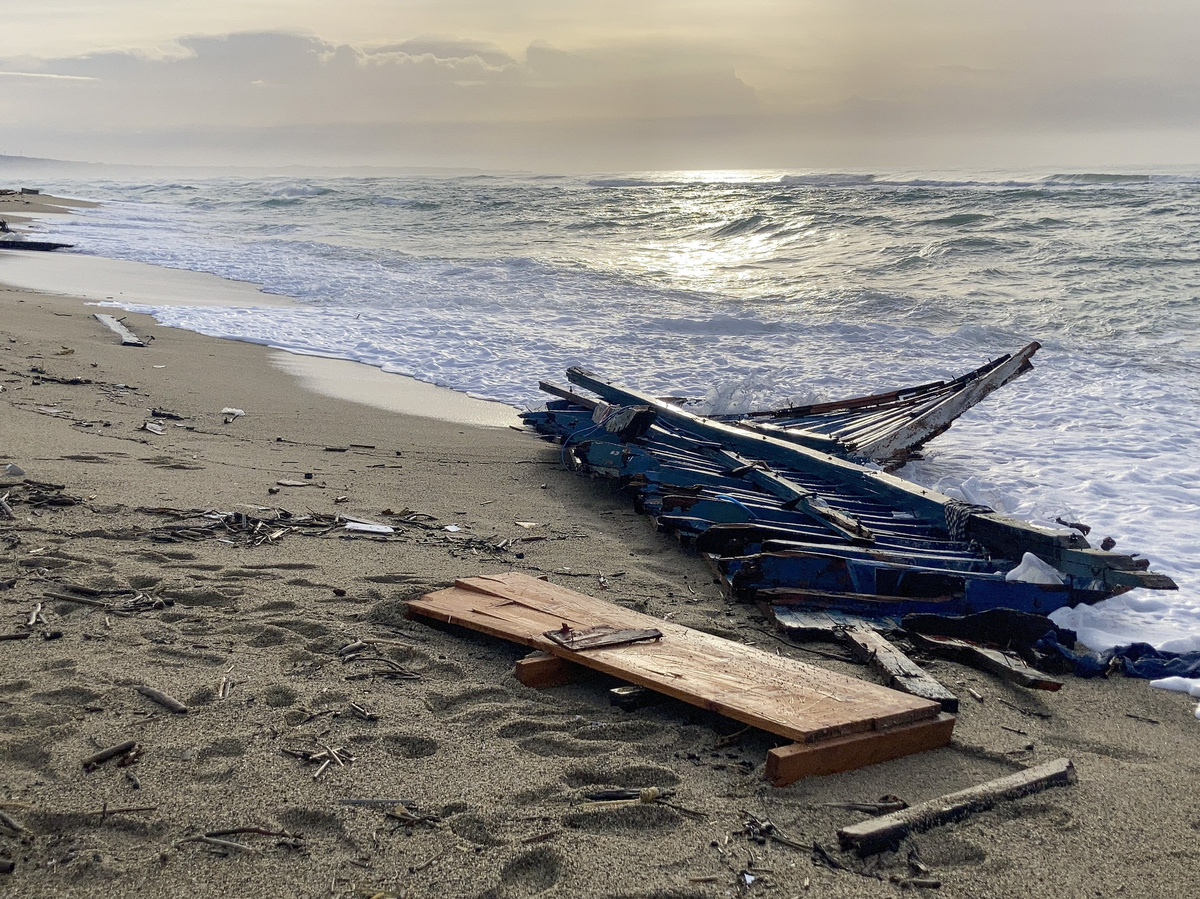 Wreckage of a capsized boat was washed ashore at a beach near Cutro, southern Italy, in February.