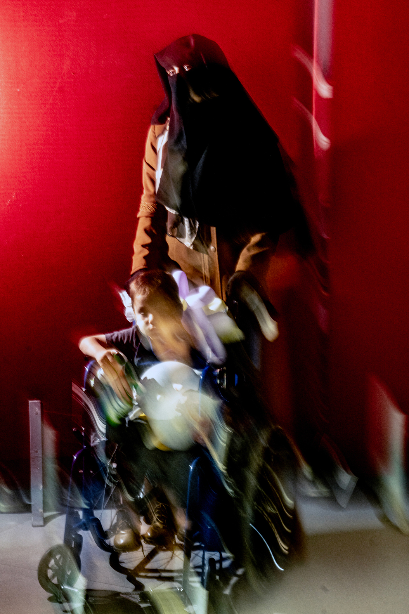 During a recent visit, accompanied by NPR, Khaled was exhausted, curled up under a blue blanket on a hospital armchair as he received the chemotherapy through a cannula in his left hand. His mother watched over him through a black niqab face covering she said she had put on to mourn the loss of her husband.
