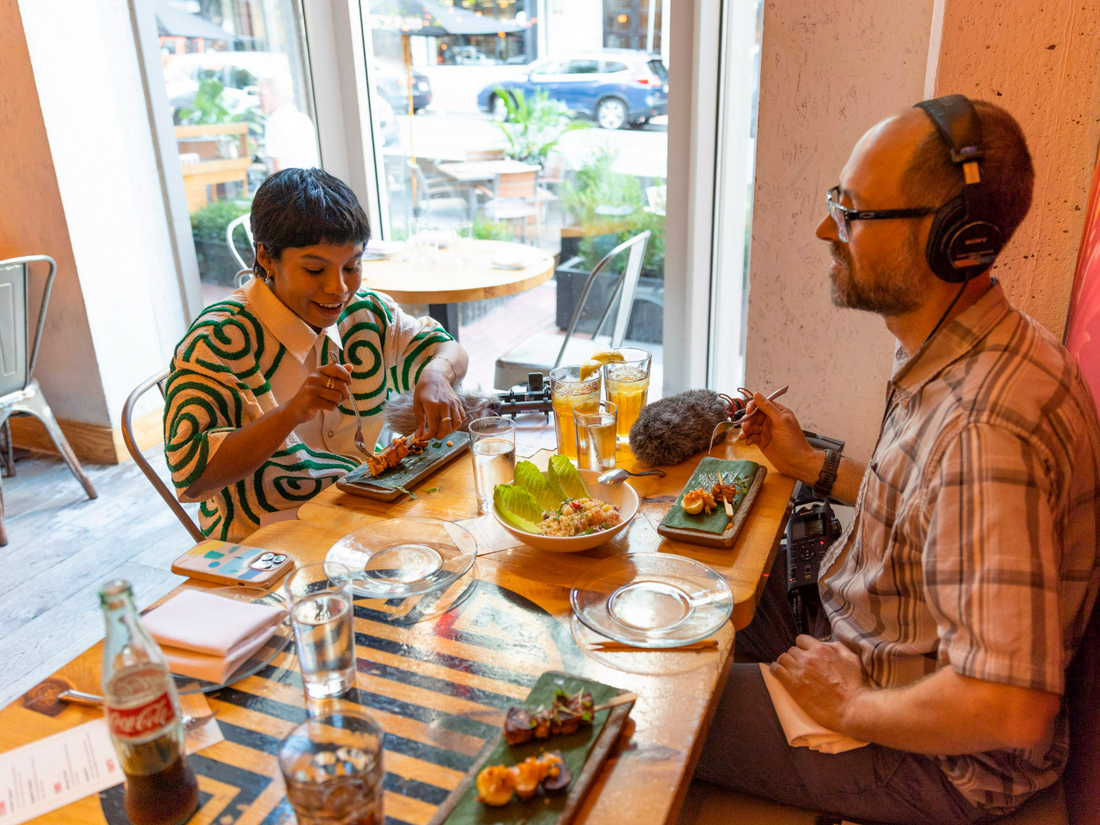 WAMU/DCist's Amanda Michelle Gomez and Jacob Fenston were among the first people in D.C. to try cultivated chicken. They wondered: would it really taste like chicken as its creators say? Tyrone Turner/WAMU hide caption