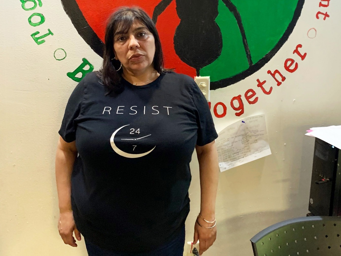 Carolina Gaete says when her son was in a Chicago public high school, school-based police officers wrongly labeled him a gang member. Since then, she's worked to clear his name and to train other teens how to interact with the police. Daniel Ash/WBEZ hide caption