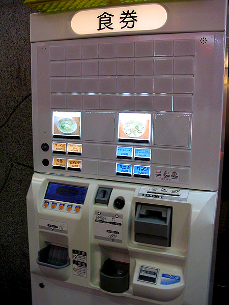 Japan also has a version of automats, known there as shokkenki. There, you choose the meal you want and purchase a ticket for it, then you hand in your ticket to the cook behind the counter. I guess this eliminates the role for the person who takes your order at the register.