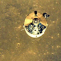 The Apollo 11 space module above the surface of the moon. Hulton Archive/Getty Images hide caption
