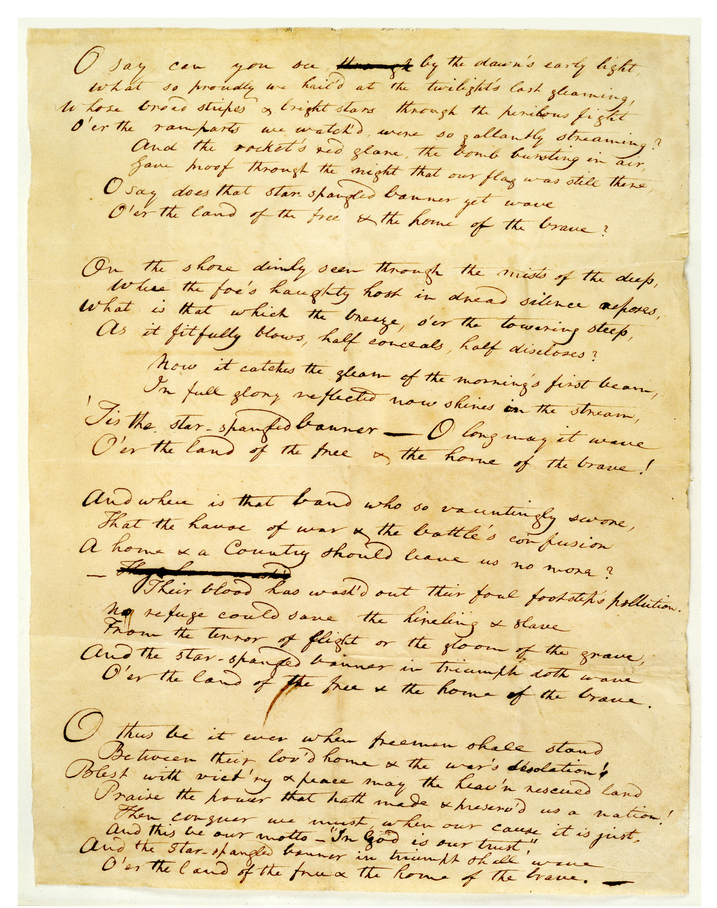 The original manuscript of the Star-Spangled Banner by Francis Scott Key.