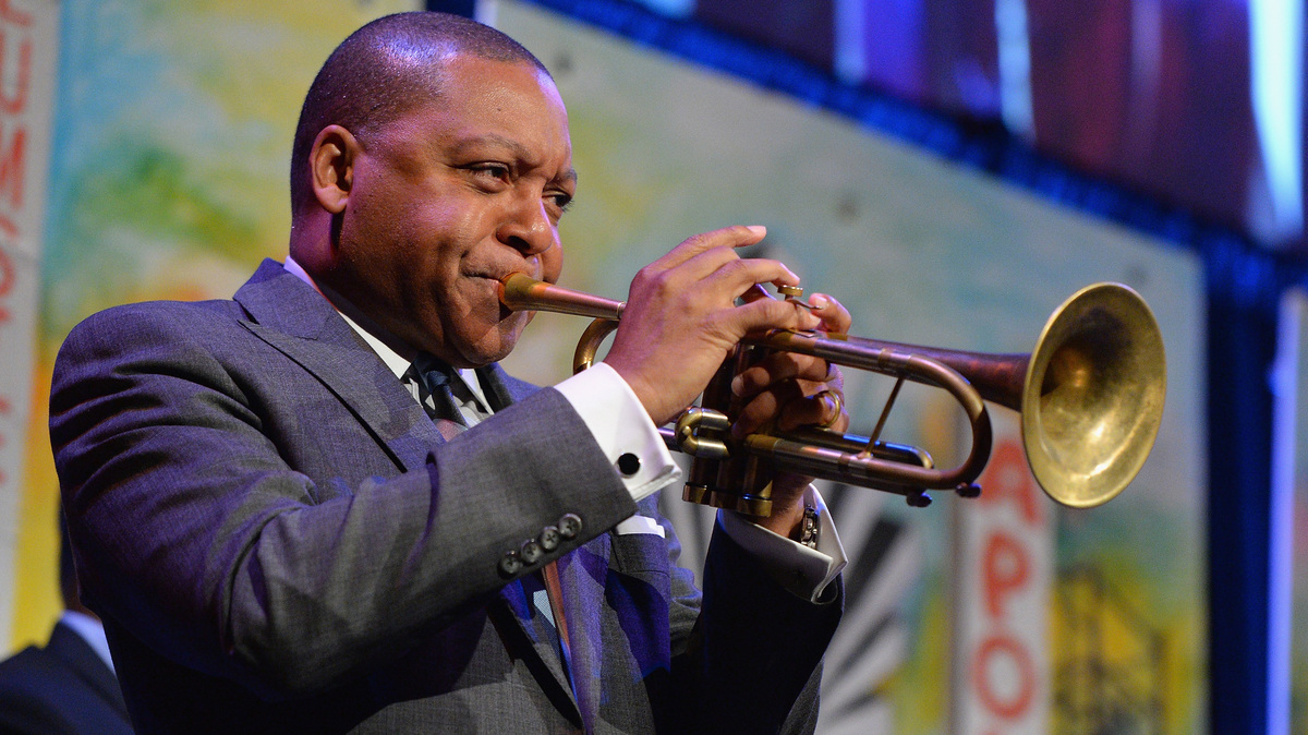 Wynton Marsalis onstage in New York in April 2016. His new violin concerto made its East Coast debut with the National Symphony Orchestra at the Kennedy Center last week. Andrew Toth/Getty Images hide caption