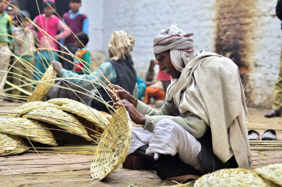 Baburam, 70, weaves baskets by hand — and seethes that after six decades of Indian independence, his village still has no power.