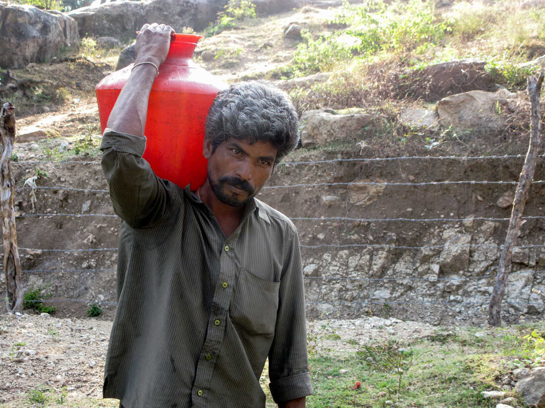 Julie McCarthy /NPRIn the village of Tulasikere, women fetch water from a well as they have for centuries. A 36-year-old farmer named Dummada says "there's been no development here for the last three generations" though politicians have promised "roads, lighting and health centers."