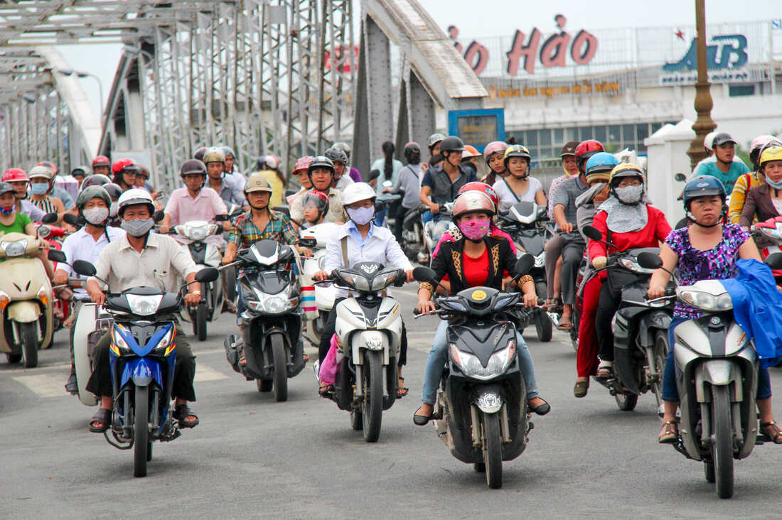 Tough helmet laws have caused the number of helmet wearers in a Vietnamese province to jump from 34 percent to 76 percent. Thomas Janisch/Moment Editorial/Getty Images hide caption