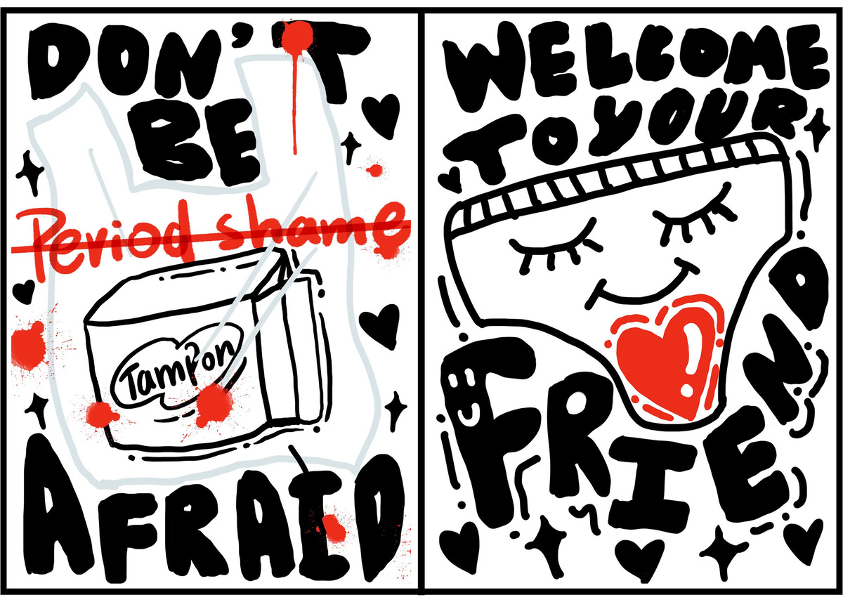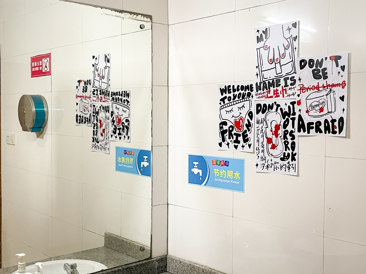 Kou decided to speak up. Majoring in visual design, she drew up a series of posters about menstruation and posted them around her university's campus. "I think that 'period' shouldn't be a shameful word for women to speak out in public," she said.