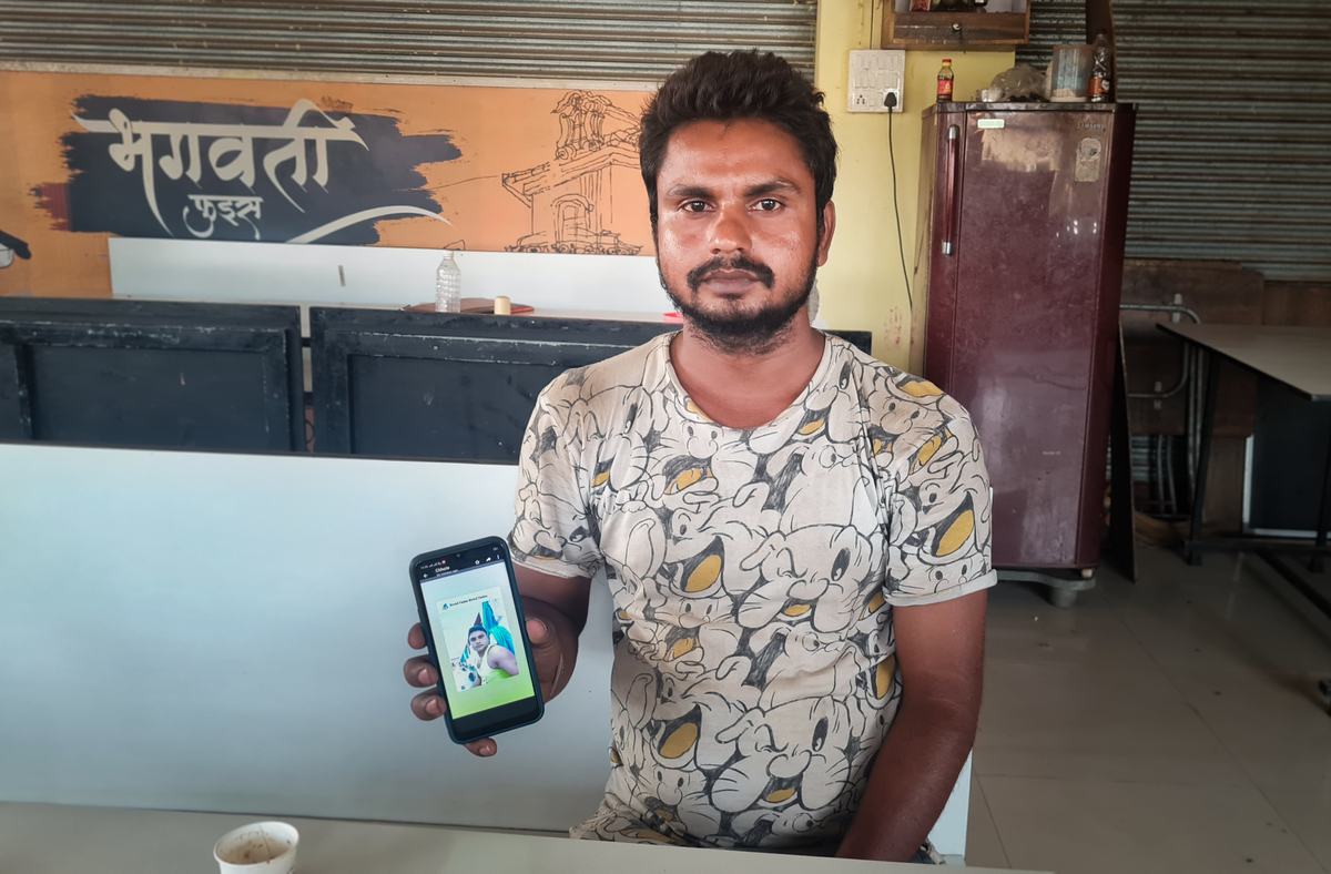 Ashwini Kumar, 24, shows a photo on his phone of his brother Vinod, who died in October 2020 in Qatar, where he was one of the many migrant workers building World Cup stadiums. His family has heard conflicting stories about the cause of death — from a workplace accident to suicide.