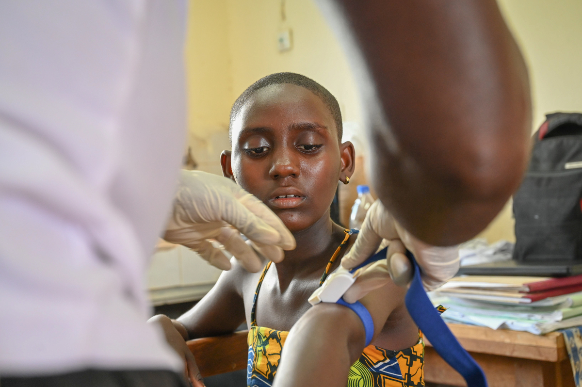Prisca Dali, 14, who was diagnosed with sleeping sickness after being ill for four years, has her blood drawn during a screening in her village near Sinfra, Ivory Coast.