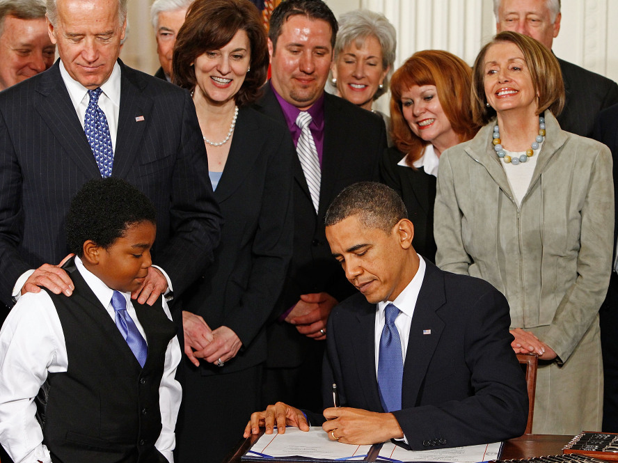 President Obama signs the Affordable Care Act at the White House on March 23, 2010.