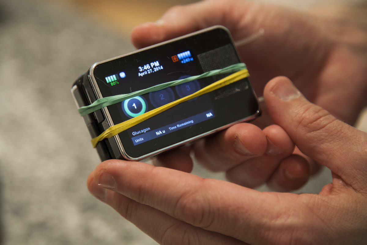 Ellen Webber for NPRThe app analyzes the data from the monitor and sends signals wirelessly to two pumps that are similar to devices many diabetes patients wear to infuse themselves with insulin. In this case, one pump contains insulin and the other contains glucagon, a different hormone that raises blood sugar when it gets too low.