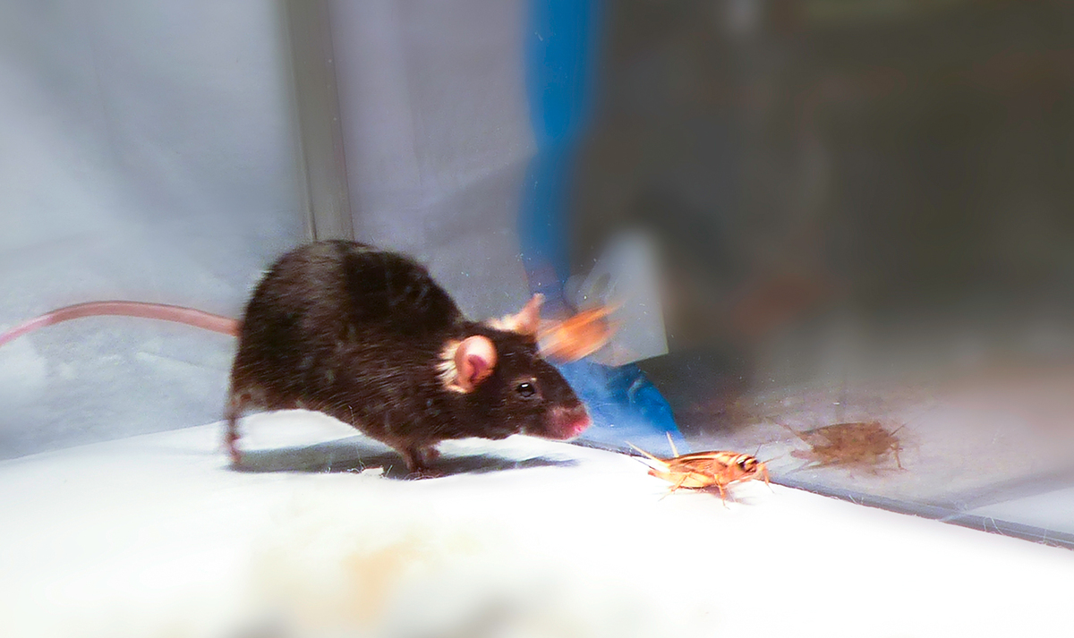 A mouse with predatory brain circuits switched on is much more likely to attack and kill prey like this cricket.