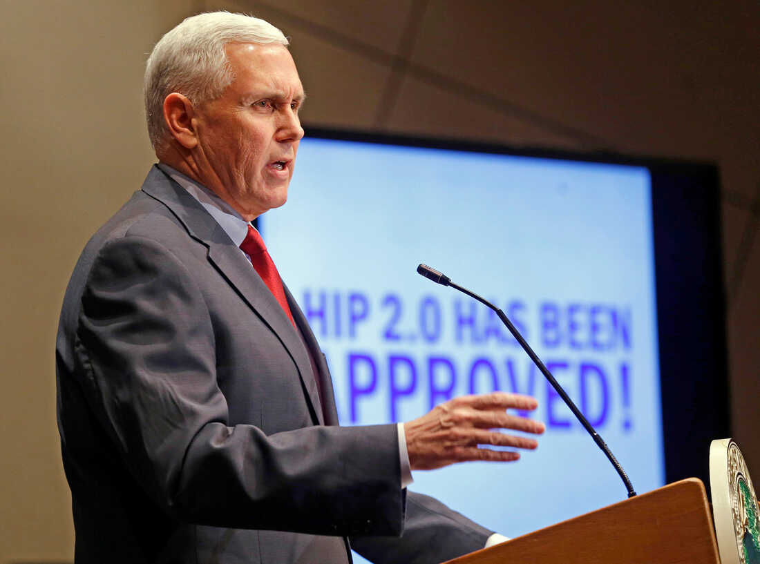 As Indiana Governor, Mike Pence announced in 2015 that the federal Centers for Medicare & Medicaid Services approved a waiver for the state's Medicaid experiment. Michael Conroy/AP hide caption