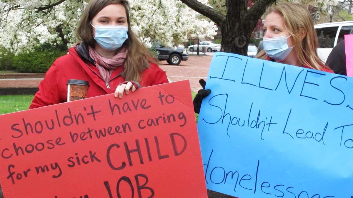 Sandy Robson (left) and Crystal Hall rally for legislation for paid sick leave on April 11, 2016, in Annapolis, Md. Under a bill recently sent to Gov. Larry Hogan, businesses with 15 or more full-time employees would be required to allow workers to earn at least five paid sick days a year.